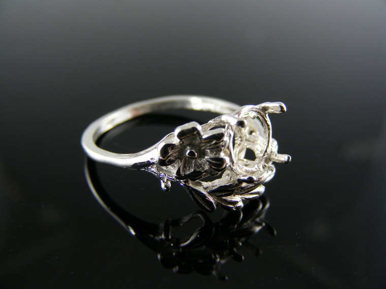 sterling silver ring setting, 7 mm round faceted gemstone, size 7