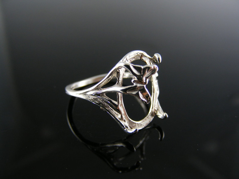 sterling silver ring setting, 14x10 mm oval cabochon gemstone