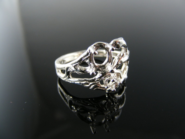 sterling silver ring setting, 1 - 7x5 mm oval & 1 - 3 mm round faceted gemstone