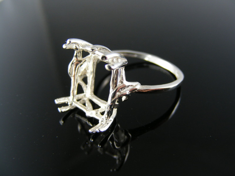 sterling silver ring setting, 12x10 mm emerald cut faceted gemstone, size 6.5