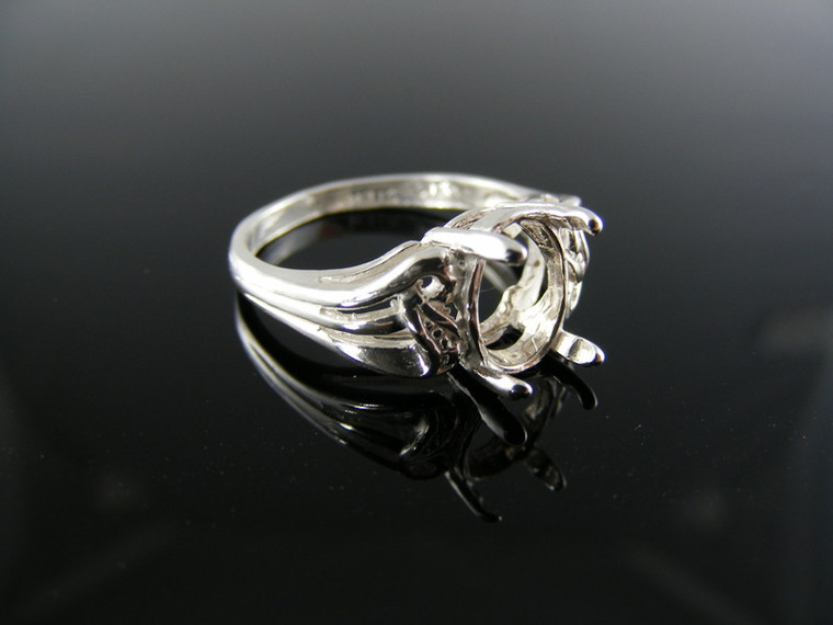 sterling silver ring setting, 10x8 mm oval faceted gemstone