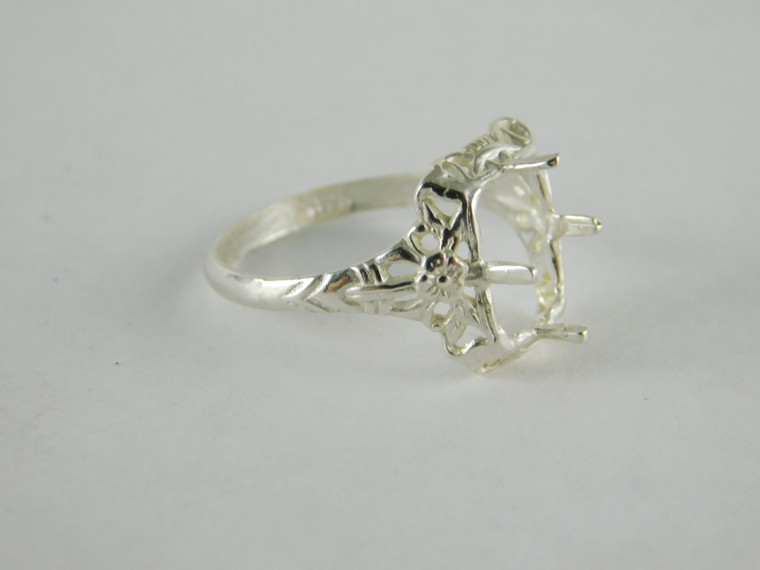 sterling silver ring setting, 10x8 mm emerald cut faceted gemstone, size 7.25