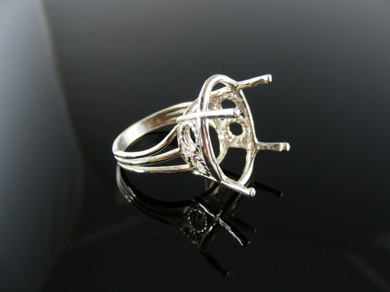 sterling silver ring setting, 22x16 mm oval faceted gemstone, size 8.5