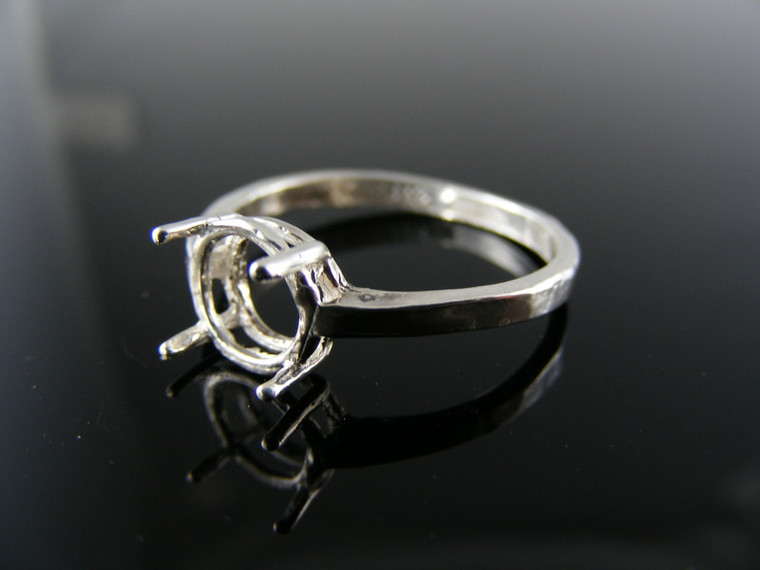 sterling silver ring setting, 7.5 mm round faceted gemstone, size 8