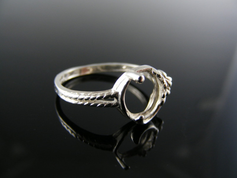sterling silver ring setting, 8x6 mm oval cabochon gemstone, size 7.25
