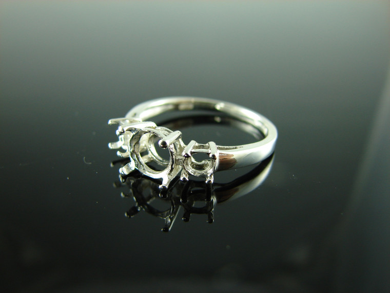 5769 STERLING SILVER RING SETTING, 1 - 7 MM & 2 - 4 MM ROUND GEMSTONE, SIZE 8.5