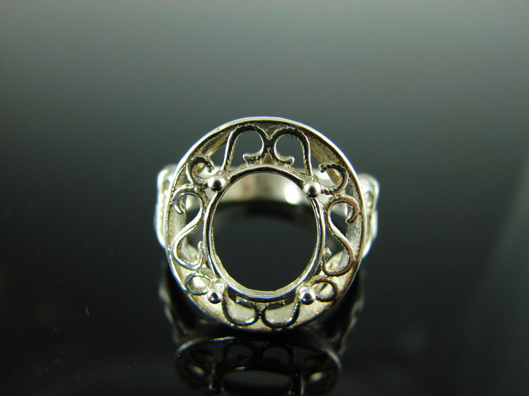 sterling silver ring setting, 11x9 oval faceted gemstone, size 7.25