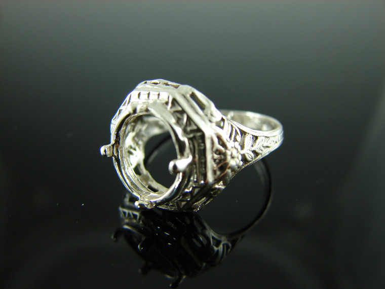 sterling silver filigree ring setting, 9 mm round faceted gemstone