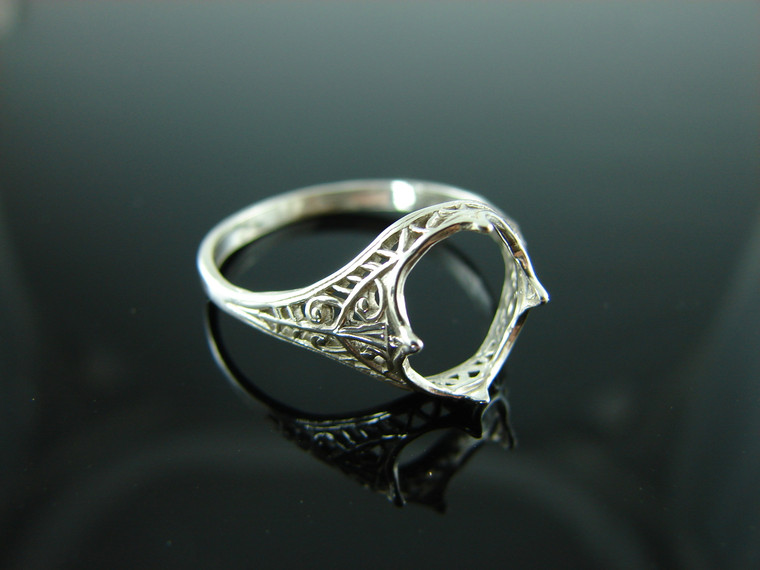 - 5937 Ring Setting Sterling Silver Size 10, 10x8 Emerald Shallow Cut Faceted Gemstone