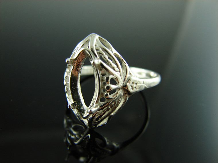 sterling silver ring setting, 12x6 mm marquise gemstone, size 10