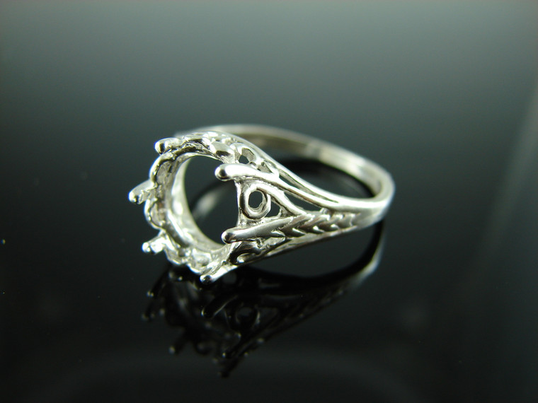 sterling silver ring setting, 10x8 mm oval faceted gemstone, size 8.25