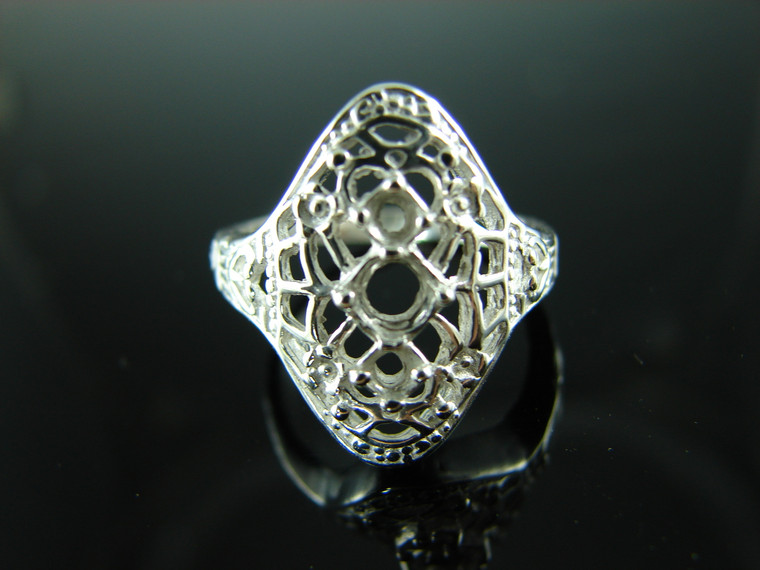 - 6054 Ring Setting Sterling Silver Size 7.75, (1) 4 mm, (2) 2.5 mm Round Gemstones