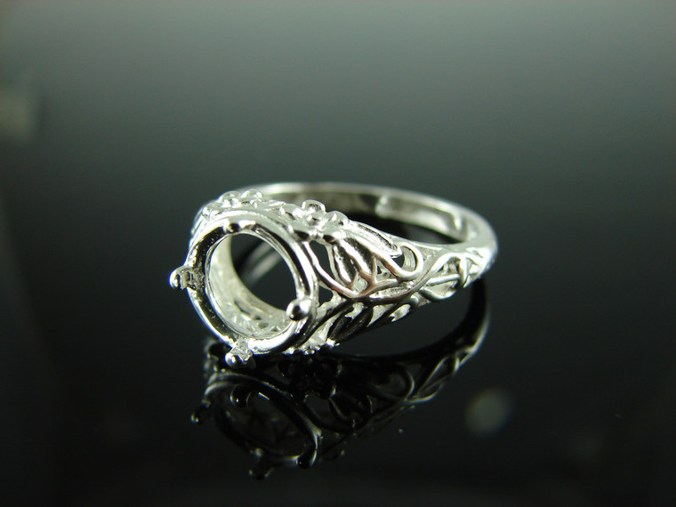 sterling silver ring setting, 8 mm round faceted gemstone, size 8.5
