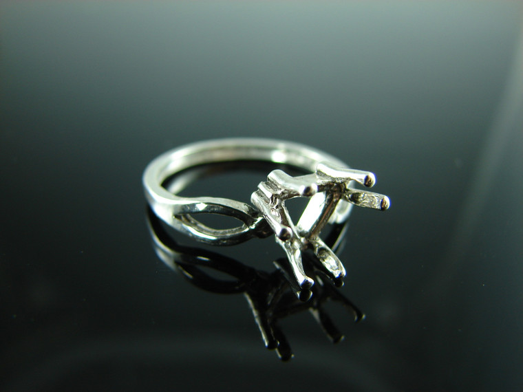 - 6070 STERLING SILVER RING SETTING, 8 MM TRILLION FACETED CUT GEMSTONE, SIZE 6