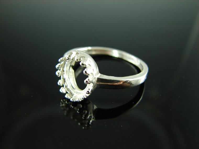 - 6088 Ring Setting Sterling Silver Size 8, 10x8mm Oval Cabochon Only Gemstone