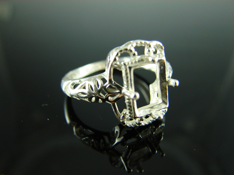 - 6098 STERLING SILVER RING SETTING, 8X6 MM EMERALD CUT FACETED GEMSTONE, SIZE 7.25
