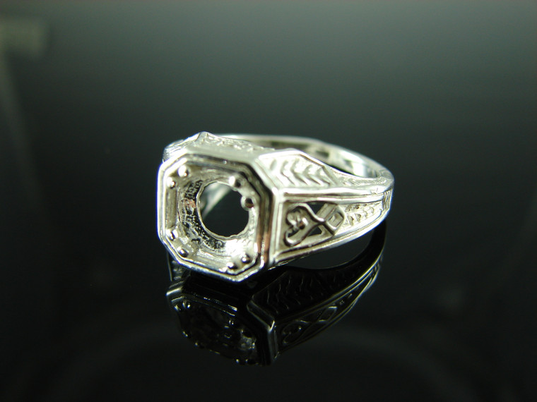 - 6125 STERLING SILVER RING SETTING, 7 MM ROUND FACETED OR CABOCHON GEMSTONE, SIZE 8.25