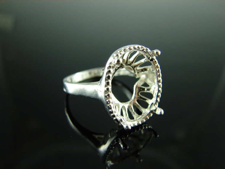 - 6126 STERLING SILER RING SETTING, 16X12 MM OVAL FACETED OR CABOCHON GEMSTONE, SIZE 7.5