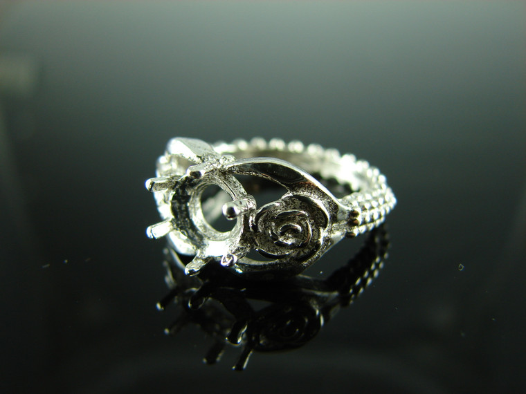 sterling silver ring setting, 7.5 mm round faceted gemstone