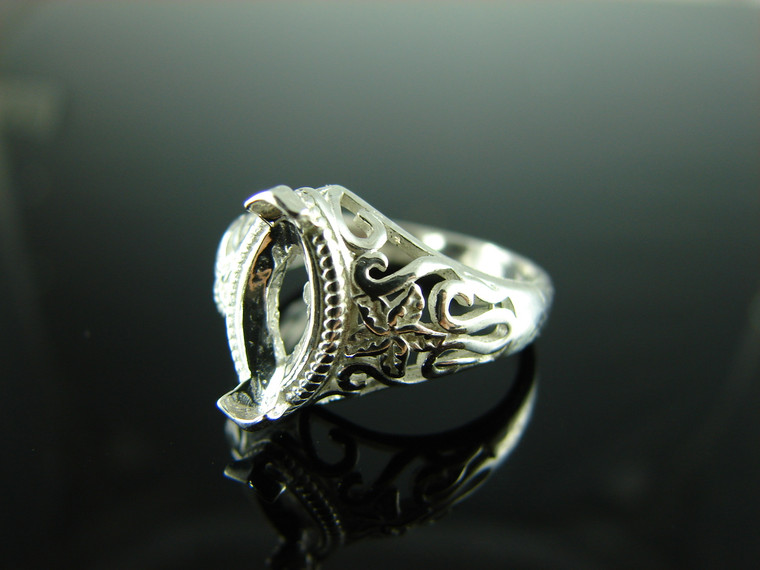sterling silver ring setting, 12x6 mm marquise gemstone, size 8