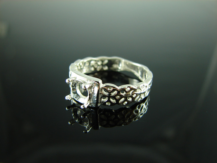 sterling silver ring setting, 6 mm round faceted gemstone, size 7.5