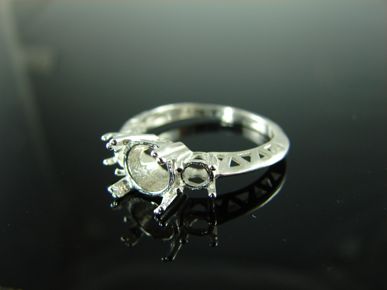 6143 STERLING SILVER RING SETTING, 1 - 8 MM & 2 - 3 MM ROUND GEMSTONE, SIZE 8