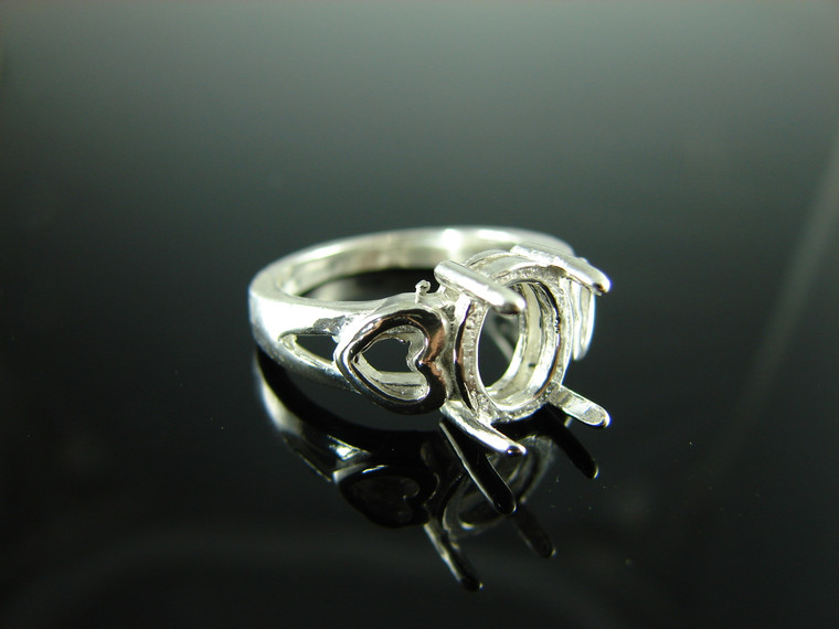 sterling silver ring setting, 10x8 mm oval faceted or cabochon gemstone