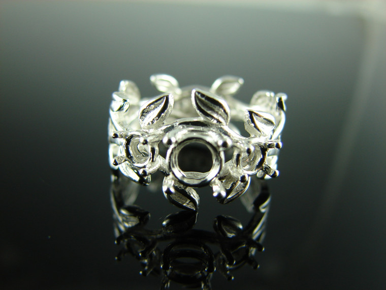 - 6186 Ring Setting Sterling Silver Size 7, 3 Stone (1)6mm and (2) 4mm Round Gems