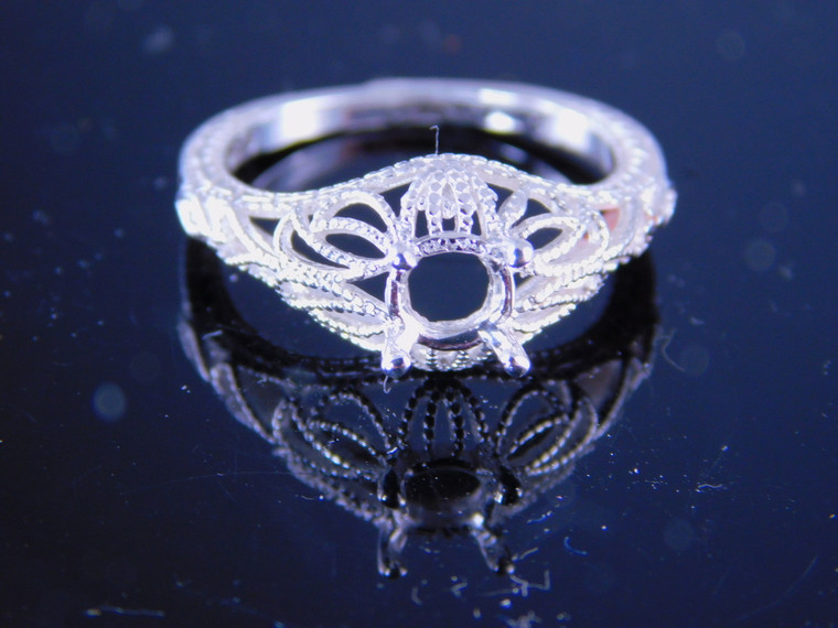 - 6220 STERLING SILVER FILIGREE RING SETTING, 6 MM ROUND FACETED GEMSTONE, SIZE 7