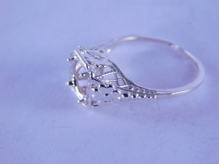 - 6265 Antique filigree sterling silver ring mounting, 6 mm faceted stone, size 4.75