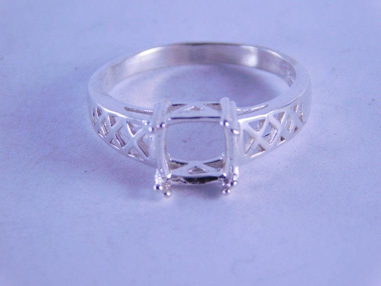 - 6283 RING SETTING STERLING SILVER, 7 MM CUSHION CUT GEMSTONE, SIZE 8.25