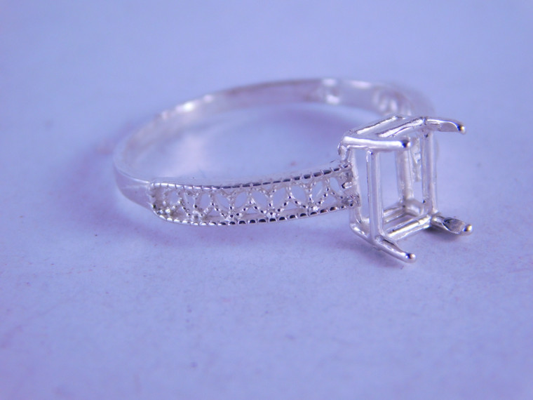 6292 STERLING SILVER FILIGREE RING SETTING, 8X6 MM EMERALD CUT FACETED GEMSONE, SIZE 8.5