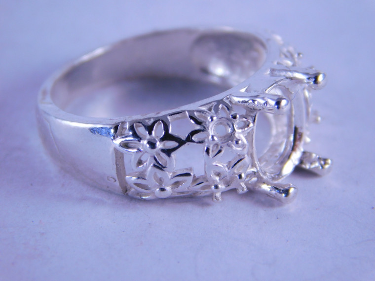 - 6293 STERLING SILVER RING SETTING, 9X7 MM OVAL & 4 - 2 MM OVAL FACETED GEMSTONE, SIZE 8