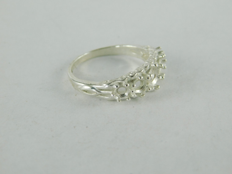 - 6304 Sterling Silver Ring Setting, 5 Stone (4.5 mm, 2-3.5 mm and 2-3 mm) Round Faceted Stone, Size 7.75