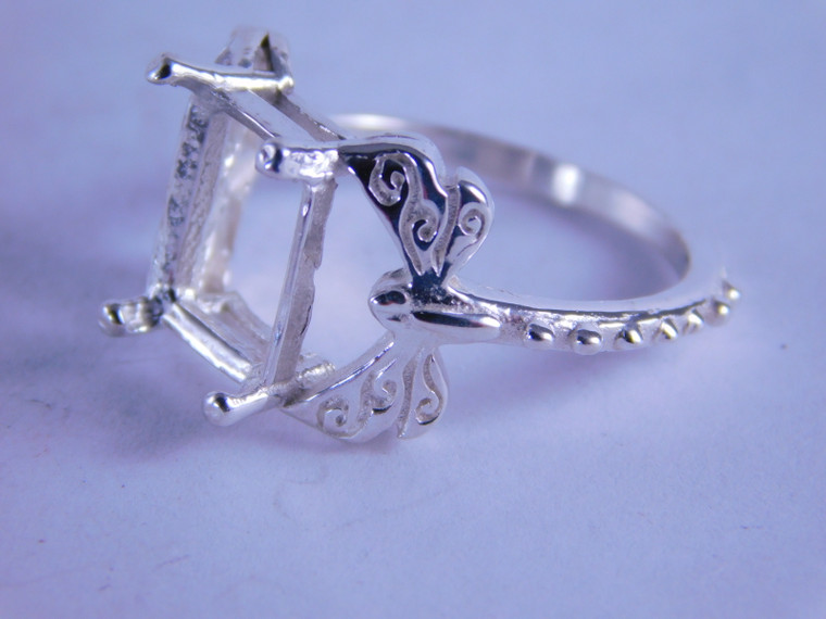 sterling silver ring setting, 10x8 mm emerald cut faceted gemstone, size 7