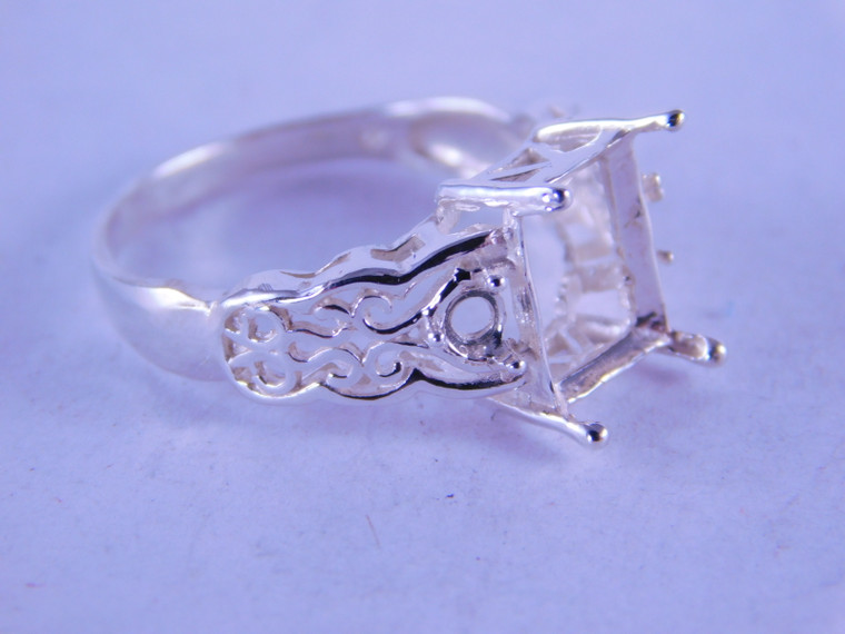 - 6333 STERLING SILVER RING SETTING, 10X8 MM EMERALD CUT & 2-3 MM ROUNDS, SIZE 8