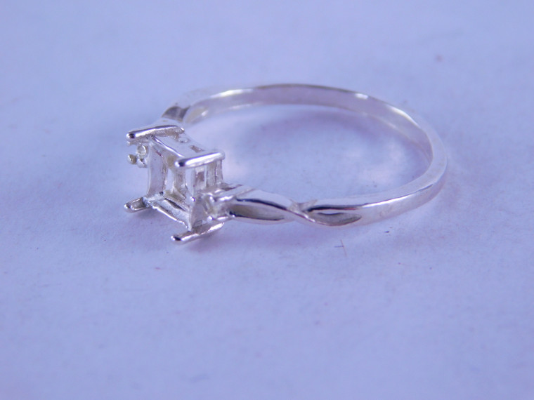 6339 STERLING SILVER RING SETTING, 6 MM CUSHION CUT W/ 2-1.75 MM ACCENTS, SIZE 8.25