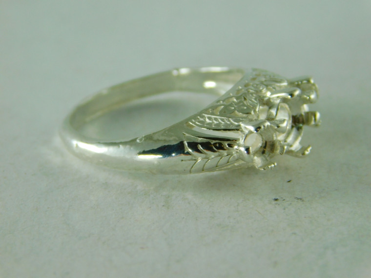 6355 STERLING SILVER RING SETTING, 6 MM & 2-4 MM ROUND FACETED GEMSTONES, SIZE 9
