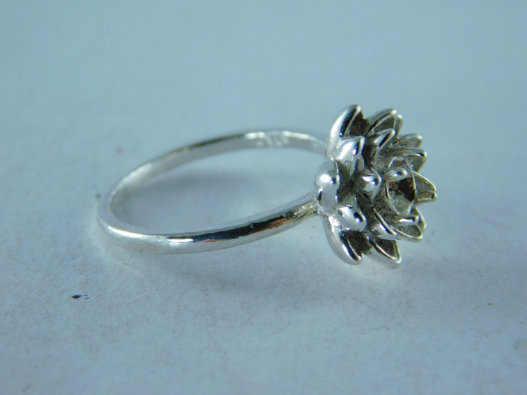 A REALLY PRETTY RING THE TOP LOOKS LIKE A FLOWER AND THE GEMSTONE SITS IN THE MIDDLE OF IT