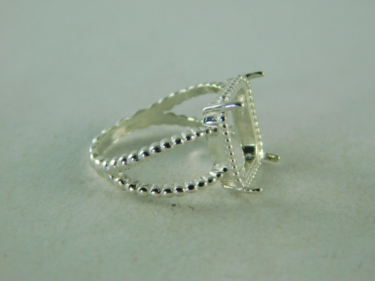 6401 STERLING SILVER RING SETTING, 12X10 MM EMERALD CUT CABOCHON, CAN SIZE TO ANY SIZE.