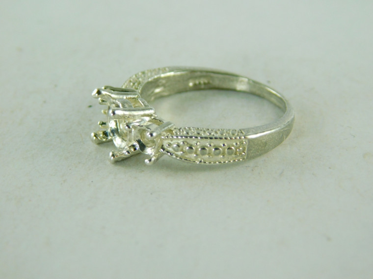 - 6414 STERLING SILVER RING SETTING, 3 STONE, 1 - 6.5 MM & 2 - 3.5 MM ACCENTS ROUND FACETED GEMSTONE, SIZE 8.25