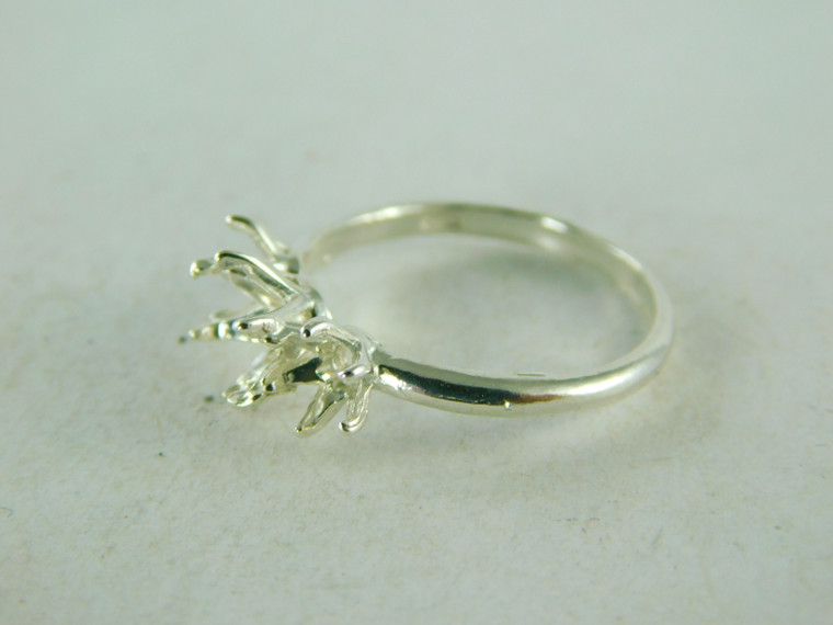 - 6416 STERLING SILVER RING SETTING, 3 STONE, 1 - 7 MM & 2 - 4 MM ACCENTS ROUND FACETED GEMSTONE, SIZE8