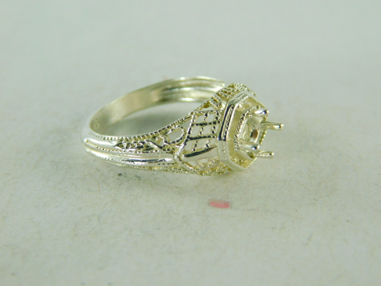 - 6427 STERLING SILVER FILIGREE RING SETTING, 4.5 MM ROUND FACETED GEMSTONE, SIZE 6.75