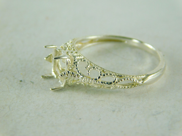 - 6431 STERLING SILVER FILIGREE RING SETTING, 7 MM SQUARE OR PRINCESS FACETED OR CABOCHON GEMSTONE, SIZE 6.75