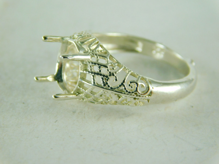 - 6432 STERLING SILVER FILIGREE RING SETTING, 9X7 MM OVAL FACETED GEMSTONE, SIZE 6.5