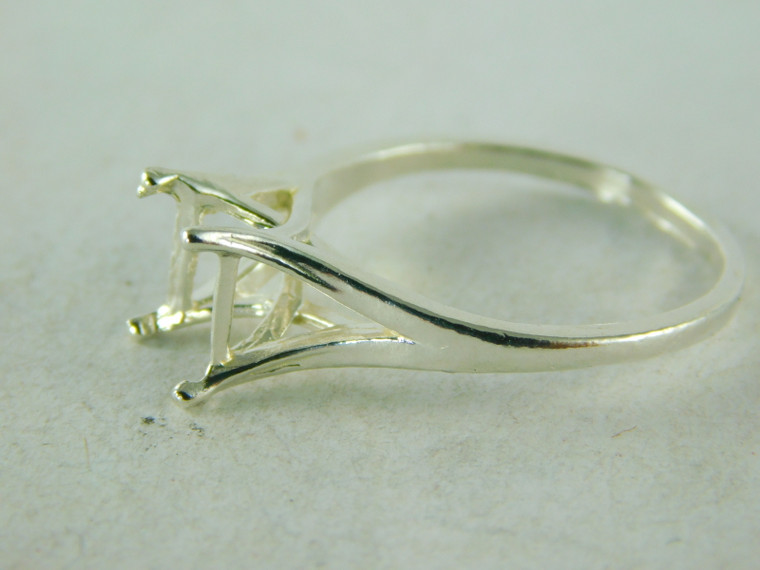 STERLING SILVER RING SETTING, 8X6 MM EMERALD CUT FACETED GEMSTONE, CAN SIZE TO ANY SIZE.