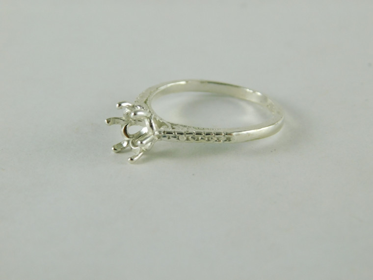 - 6446 Sterling Silver Ring Setting, 7mm Round Faceted, Size 8.25