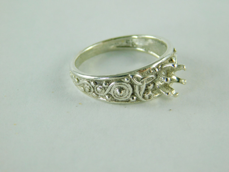 - 6454 STERLING SILVER RING SETTING, 6 MM ROUND FACETED GEMSTONE, SIZE 9