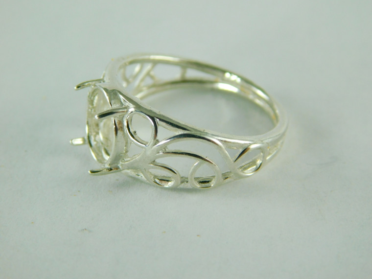 STERLING SILVER FILIGREE RING SETTING, 10X8 MM OVAL CABOCHON GEMSTONE, CAN SIZE TO ANY SIZE