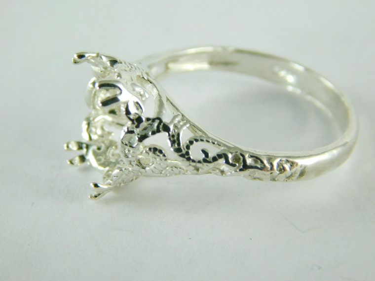 - 6462 STERLING SILVER FILIGREE RING SETTING, 12X10 MM OVAL FACETED GEMSTONE, SIZE 10.5